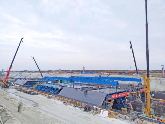 陆水交界施工“0号仓”启动抽水
