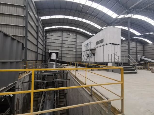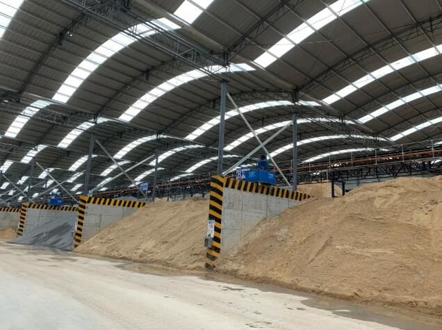 三伏天里户外作业,对工地施工工艺带来了挑战,虽然室外临近30℃,但原料加工分拣车间内却有丝丝凉意,原来在车间内有一台给混凝土降温用的制冰机。