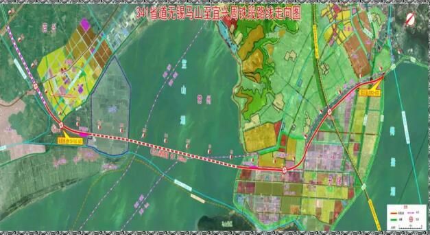 341省道无锡马山至宜兴周铁段工程起点为230省道十里明珠大堤,向南与陆马公路、苏锡常南部高速公路交叉,经常州武进区后以隧道形式下穿竺山湖,止于周铁镇南侧规划S341与S230(渎边公路)交叉处,路线全长15.76公里,采用一级公路标准建设。起点至马山互通采用双向四车道,马山互通至终点采用双向六车道,设计速度100公里每小时。预计2022年建成通车。