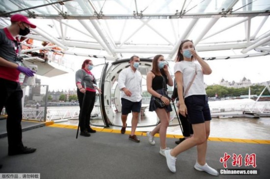 当地时间8月1日,英国伦敦,“伦敦眼”摩天轮重新开放。图为游客从摩天轮上走下来。