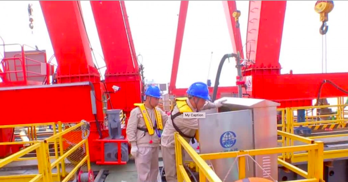 临近中午,常泰长江大桥主塔基础5号墩钢沉井正在进行吸泥下沉作业。高温天气下,供电线路很容易出现故障。国网泰兴供电公司虹桥供电所工作人员王永胜一行来到现场,仔细检查双回供电线路,消除线路缺陷。王永胜告诉记者,出梅后,气温迅速回升,电器开关、设备容易发热,维护电路正常运行尤为重要。