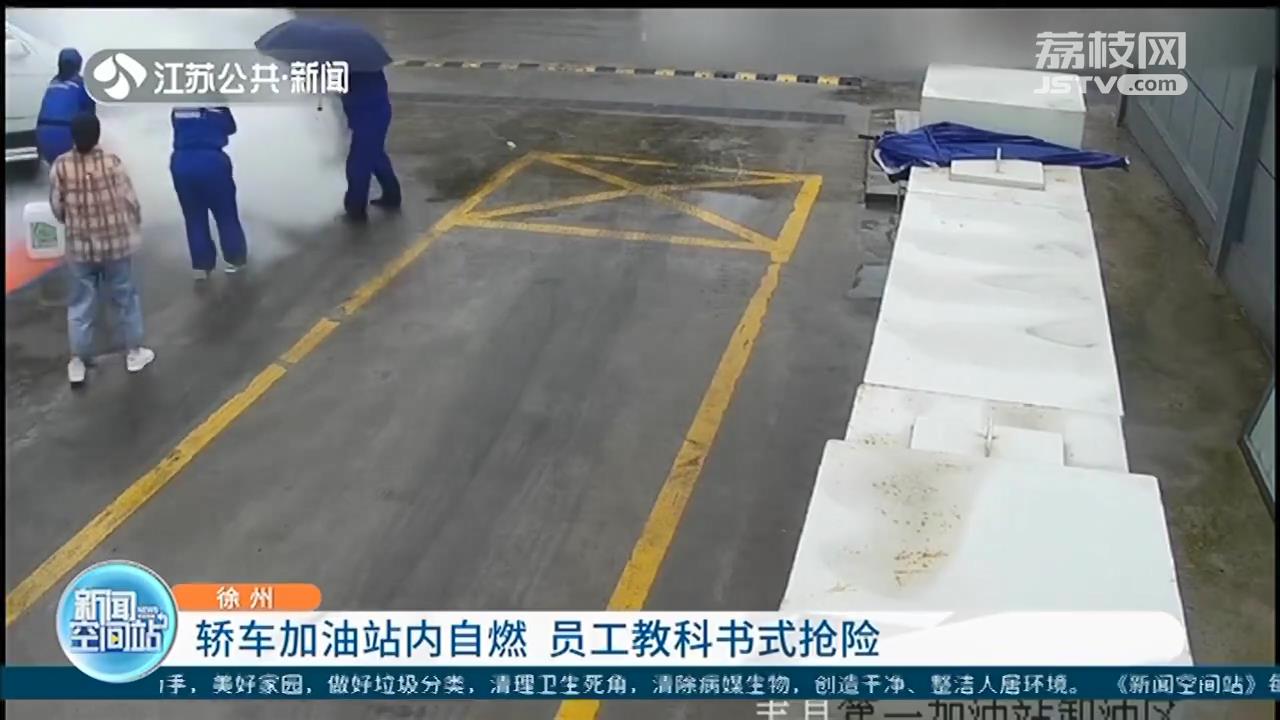 中石化徐州丰县第一加油站站长刘滨说,为了防止安全隐患的发生,立即把车辆推出了加油站,停放在安全区域。