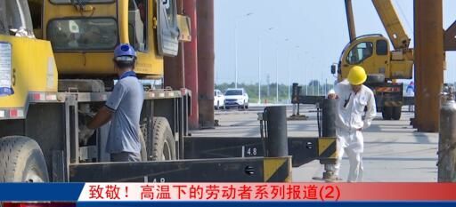 钱资湖大桥项目工作人员 黄建光:“热的时候身体的感觉是心跳加速,血压有点升高,就感觉有点反应比较慢。这个时候我们提前有这种感觉的时候,我们就提前停下来找一个阴凉透风的地方,稍微歇息一会儿。”