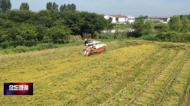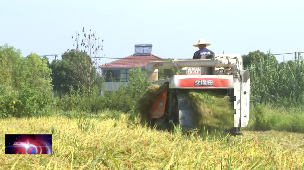 记者 张袁华:“八月季节、瓜果飘香,在朱林镇黄金村,有机软米也散发出成熟的稻香味,我们可以看到田间已有收割机在收割今年的有机水稻,预计首批新米将在8月20号左右上市。”