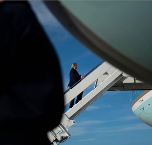 △特朗普登上飞机舷梯(图片来源:法新社)