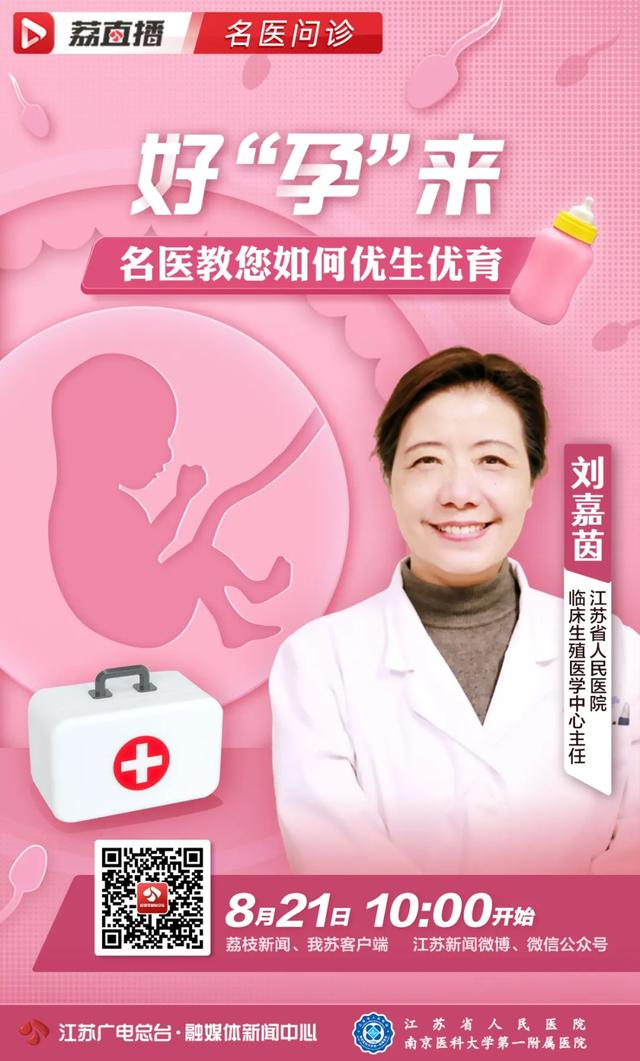 8月21日10:00,《荔直播·名医问诊》特别邀请江苏省人民医院临床生殖医学中心主任刘嘉茵,为您奉上一份“好孕”锦囊。