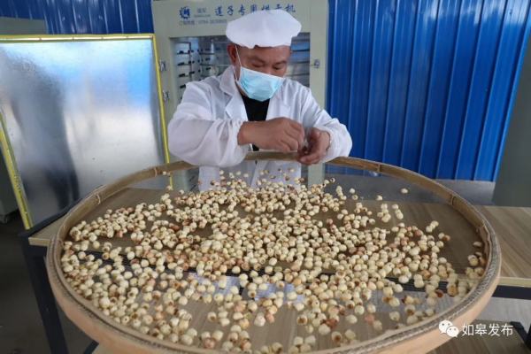 在莲子加工车间,经过剥皮去芯的莲子