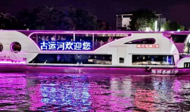 “目前新游船已有3艘抵达扬州并成功进行试航,接下来几天,剩下的4艘也将陆续抵达。”扬州全域旅游有限公司相关人士介绍,7艘游艇中最长的游船长度32米,宽8米,动力装置采用2台沃尔沃主机,时速可达到每小时20公里。记者看到其中一艘已成功试航的“运河名城5号”,游艇不仅外形绚丽,紫红色与白色相间的主体颜色尤为炫目,在船身醒目位置还绘有五亭桥、白塔、运河三湾公园等图样,处处彰显扬州元素。