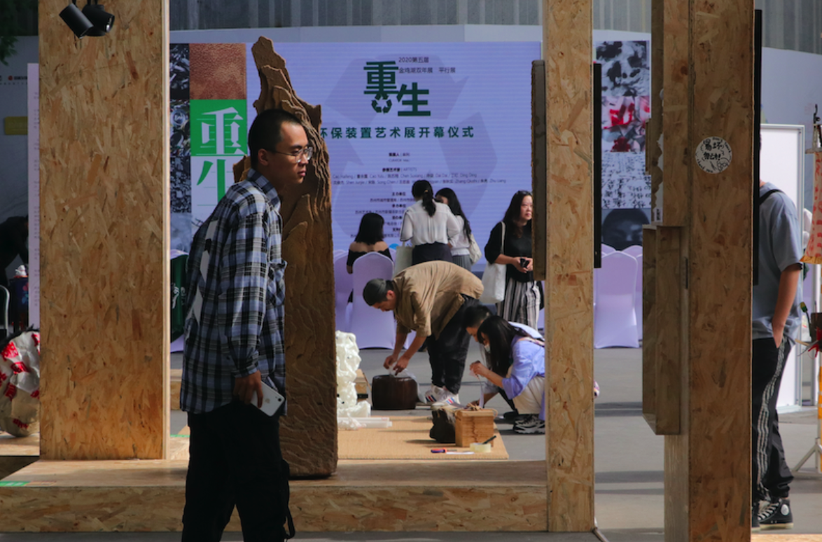 今天(9月20日)上午,第五届金鸡湖双年展平行展之“重生——环保装置艺术展”在苏州工业园区圆融时代广场展出。现场呈现了 11 位艺术家的数十件装置作品,以更具批判和反思的艺术表达,讨论当下的环境问题和垃圾分类的现状。展览将持续至10月31日。