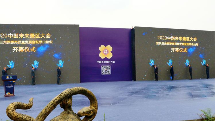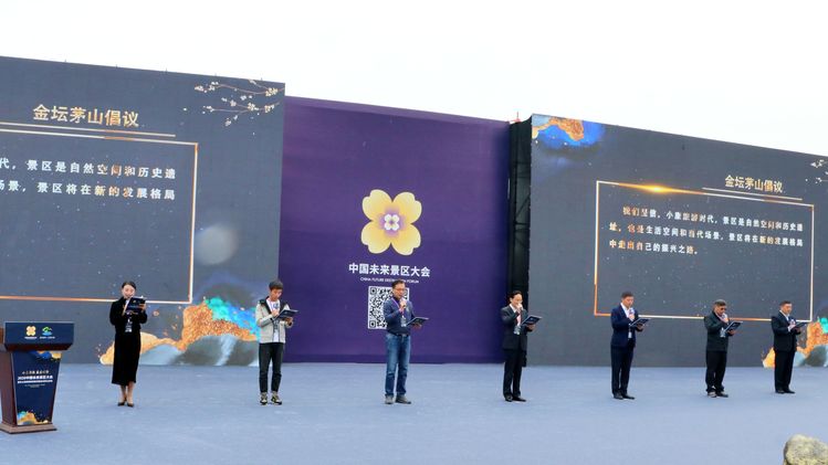 会上,三省一市文旅厅代表及景区、度假区代表上台联合发布金坛茅山倡议。