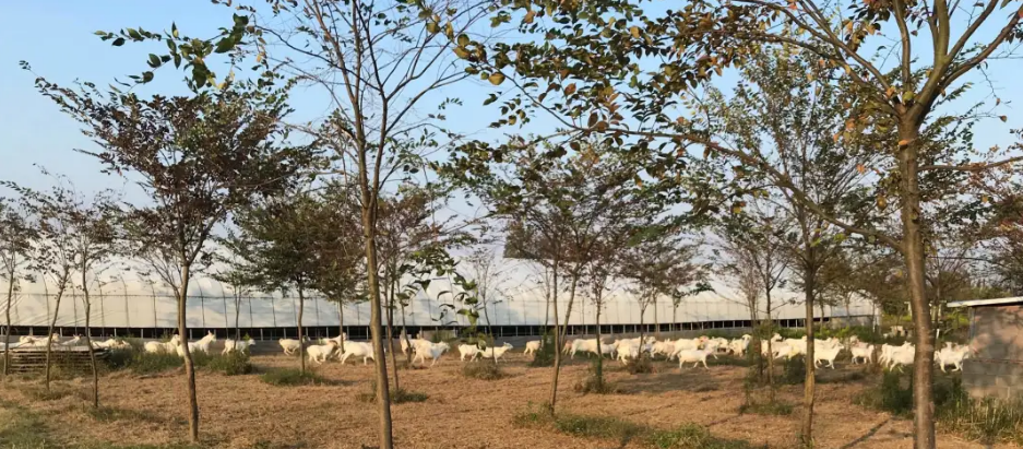 最近增租土地200亩,实际已达500多亩。记者在万建芳偌大养殖场中看到时而奔跑的散养羊群在自由觅食,看到千头合棚的圈养设施场面壮观,看到据说以此喂养可极大降低羊肉胆固醇并自带杀菌消毒作用的构树饲料种植基地,看到外观不过是几间矮屋的工作生活配套环保整洁……当然也发现这里相比现代养殖场所表现出的原始、粗放的“荒凉”。