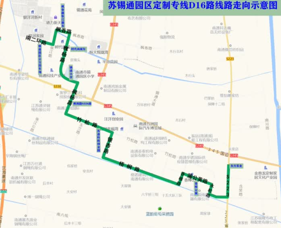 停靠站点:锡通园区公交回车场、枫香路张江路东、时代尚城东、锡通小学、枫杨路S336南、苏锡通科技创业园、香樟公寓、东方泵业