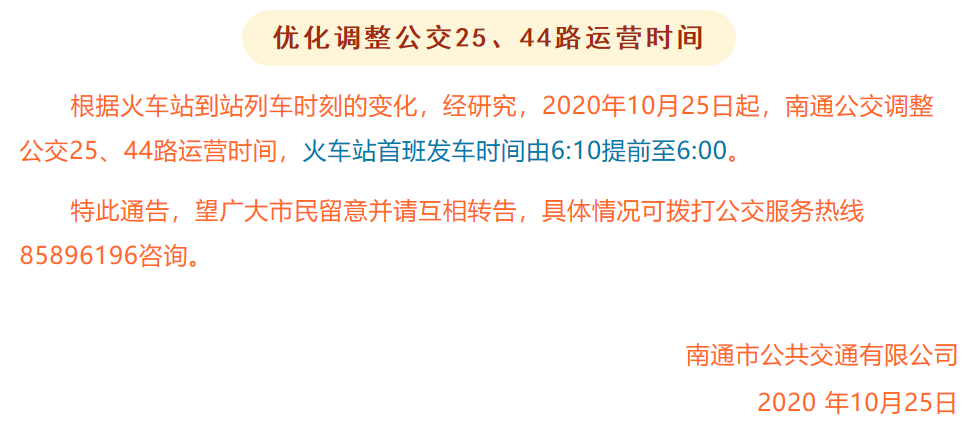 即日起,南通公交25路、44路火车站首班时间有调整