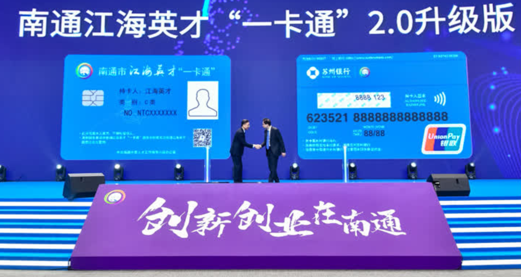 为更好的服务南通双创人才,今天上午,在2020中国南通江海英才创业周开幕式上,南通市委人才办联合江苏银行推出了南通江海英才“一卡通”2.0升级版。