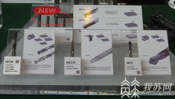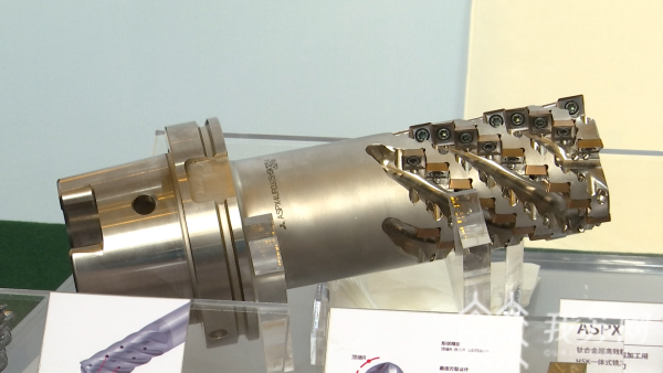 为了使飞机机身更轻,从而降低油耗、降低成本,飞机的零部件开始由金属材料向复合材料转变,这也是未来航空材料发展的大趋势。相应的,部分制造设备也从金属涂层转换成更加坚硬的金刚石涂层,您瞧,三菱综合材料研发的设备上这个黑色的部分,就是耐磨性更高的金刚石涂层,能够提升加工的效率。