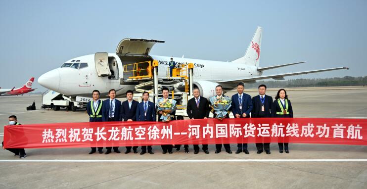 10月30日上午11时05分,一架B737-300全货机装载着12余吨电子产品,从徐州观音国际机场起飞前往越南河内,标志着徐州至河内国际货运航线正式开通。这是疫情以来观音国际机场继徐州至西安航线后,开通的又一条全货机航线。
