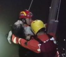 在做好安全措施后,一名消防员携带救生圈跳入了河道,并立即游到了女子身边,将其托起并将她带到了救援梯旁,随即与岸上的消防员合作,一起将女子救上岸。