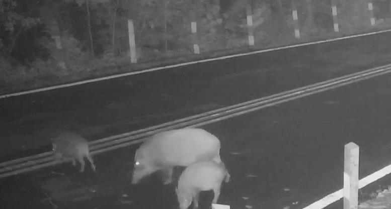 近日,江苏句容宝华山监控中看到野猪凌晨成群结队下山觅食的场景,最多的一次共有9头同时出现。6只成年野猪携3只幼崽,甩着尾巴悠哉悠哉地散步。据悉,江苏宝华山国家森林公园森林覆盖率高达92%,随着生态环境越来越好,类似场景已多次出现。