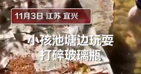 11月3日,一名2岁宝宝在小区池塘边玩耍,不小心打碎了玻璃瓶,爸爸顾先生立刻光脚下水池捡起玻璃碎片。