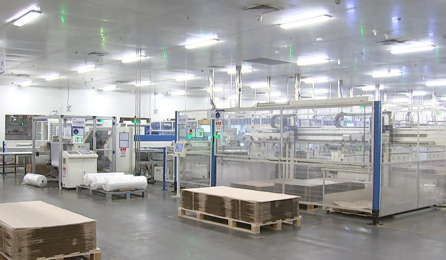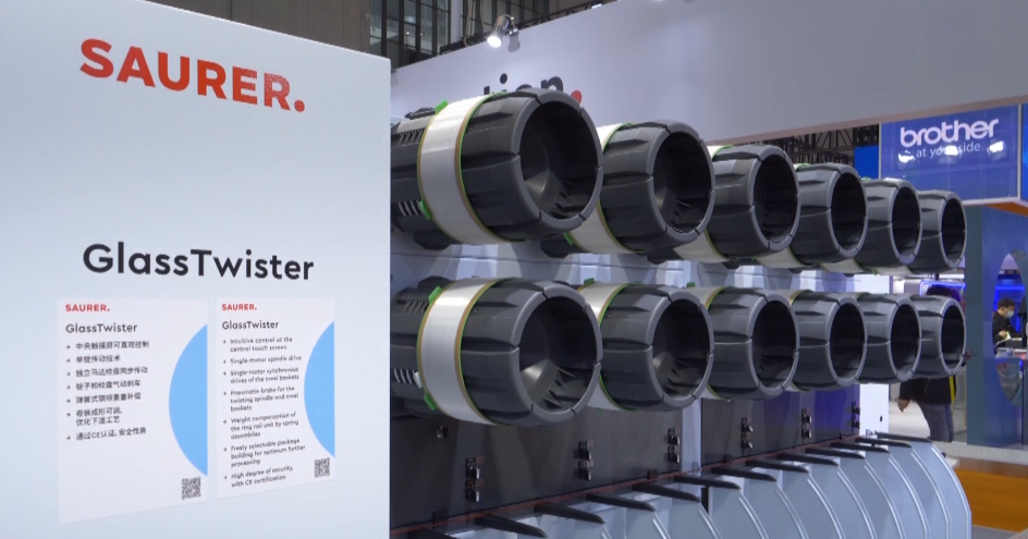 卓郎智能技术有限公司销售总监 陆震宇:“这台设备目前可以说是世界上最先进的,我们现在讲到玻璃纤维,最主要的用途,现在的智能手机需要有大量的通信数据,需要用到电路板,这个电路板就是玻璃纤维一层层压起来的。”