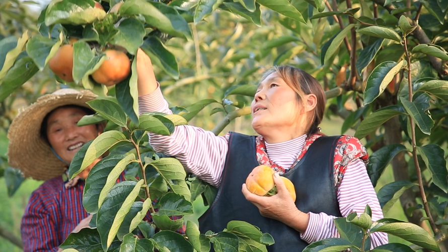(戴庄村村民正在采摘有机甜柿)