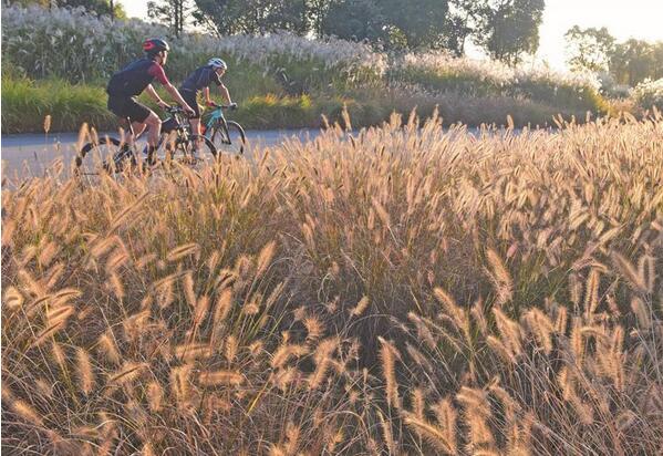5日,两名市民在贡湖湾湿地公园骑行。随着立冬节气的到来,太湖新城秋景宜人、美不胜收。 (还月亮 摄)