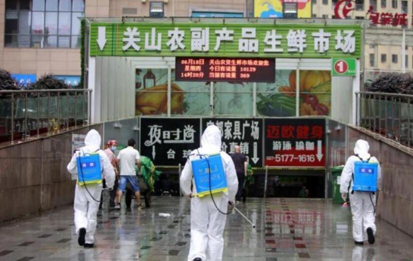 资料图:消防员进入湖北省武汉市关山农副产品生鲜市场内开展消杀作业。 王方 摄