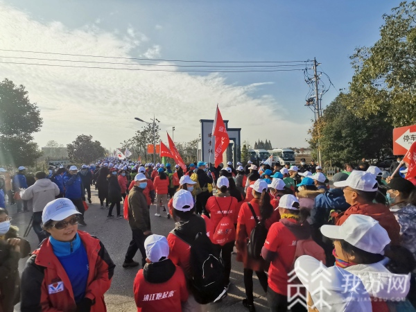 我苏网讯 今天上午(11月29日),以健身休闲为主题,户外运动为内容的“2020年长江户外休闲徒步大会”在镇江世业洲举行。来自镇江、常州、泰州、无锡等地的近2000名徒步爱好者集聚在这座“江中宝岛”上,感受运动之美,旅游之魅。