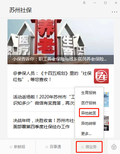 选择菜单栏中的-微业务-异地就医