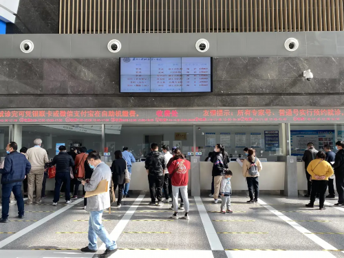 在苏州大学附属第一医院(总院),来自盐城的刘先生,正在服务台办理异地就医的收费单。