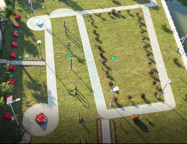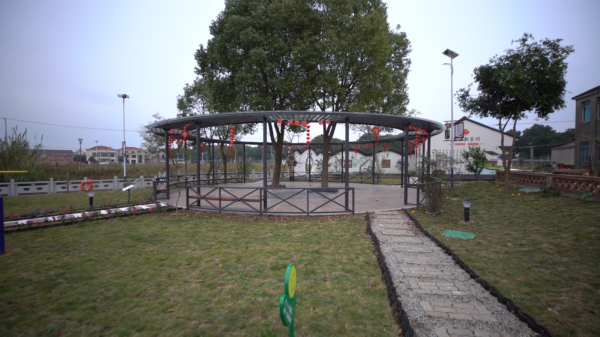 在乡贤周晓东的记忆里,小时候经常玩的地方就是打麦场,村上一共有四块这样的打麦场,在丰收过后打麦场上都是一堆堆的柴火,特别地耀眼。他跟那时候的发小在这里玩耍,捉迷藏,充满童趣。如今,这些原本坑坑洼洼的田地,村里都把它整平后连了起来,做成了一个个小游园。当人们再次回到这里,孩子们多了玩耍的乐园,老年人也可以在这里喝茶、休闲、锻炼……