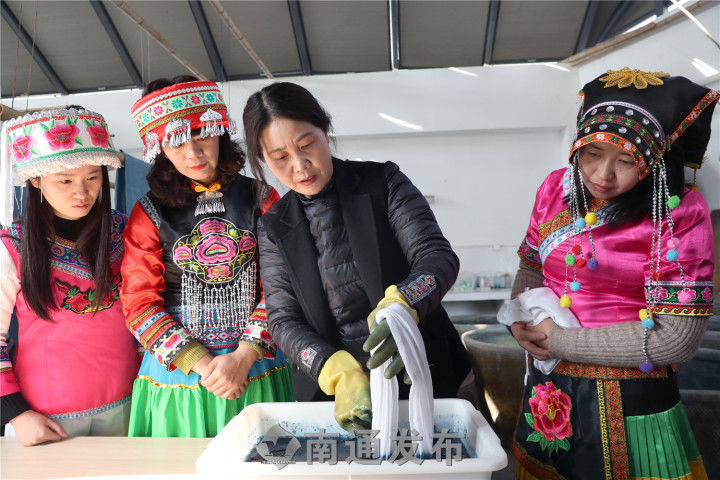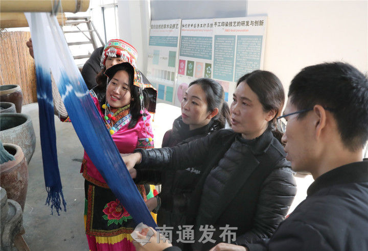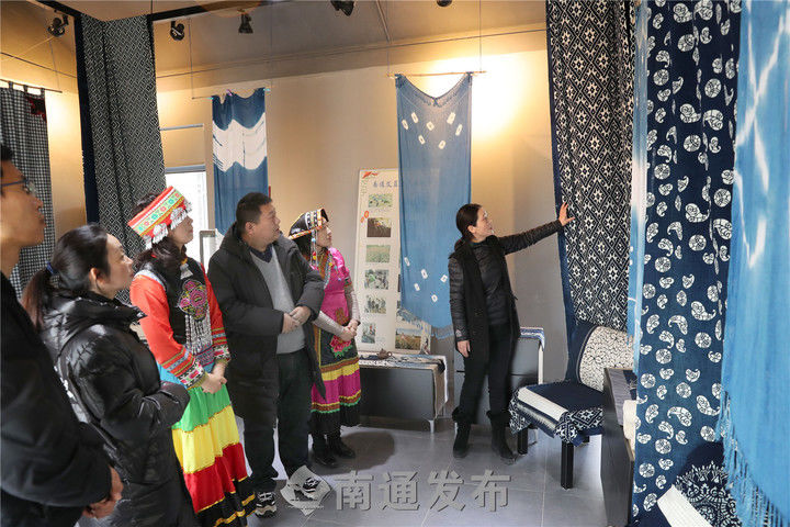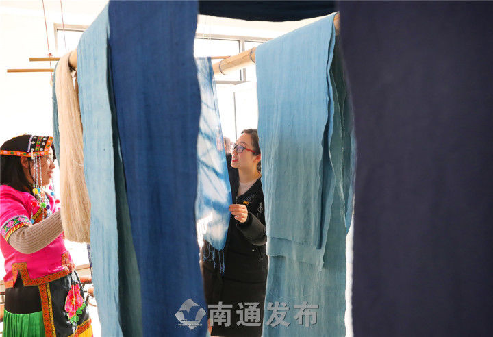 近两年来,南通蓝染的知名度越来越高,本月初,央视十套《花季中国》栏目播出南通艾蓝染色技艺基地的种蓝制靛专题片。2018年中央电视台一套“家有传家宝”栏目《蓝靛花布美人间》,采访并播放“艾蓝染艺”基地的蓝草种植和田间染色画面。当代中华文化传播使者、网红非遗大使李子柒专门来基地探寻小缸青蓝染技艺。今年7月,艾蓝染色技艺基地获“南通市第四批非物质文化遗产传承基地”称号。目前基地传承研习已经取得突破性进展,后续将申报国家级非遗和申请国家地理标志。