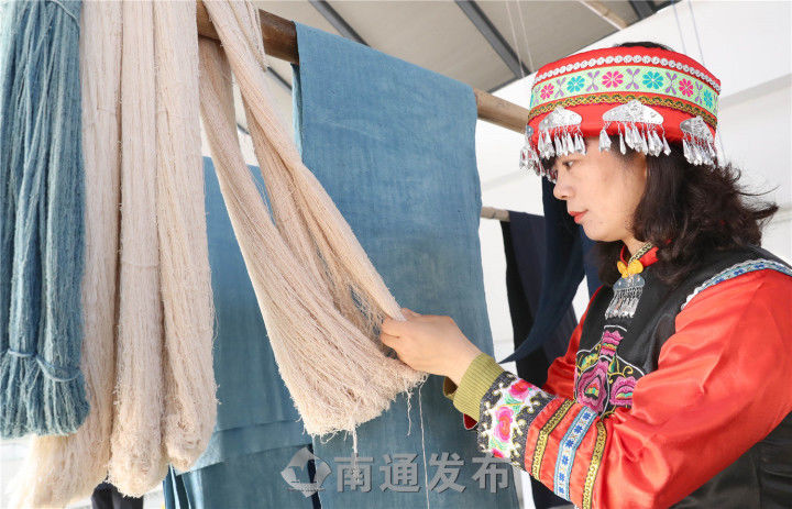 “这就是在我国有着千年历史的蓼蓝染色工艺,我们中华民族的文化瑰宝,更是南通地方的文化符号。”南通艾蓝染色技艺传承基地项目的发起人、负责人姜平不无骄傲地介绍,由古老的蓼蓝染色工艺“小缸青”制作出来的青布“粉蓝布”,纵历百年仍黑艳如新,不褪色、不霉蛀,“衣敝而色不衰”。