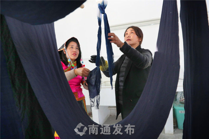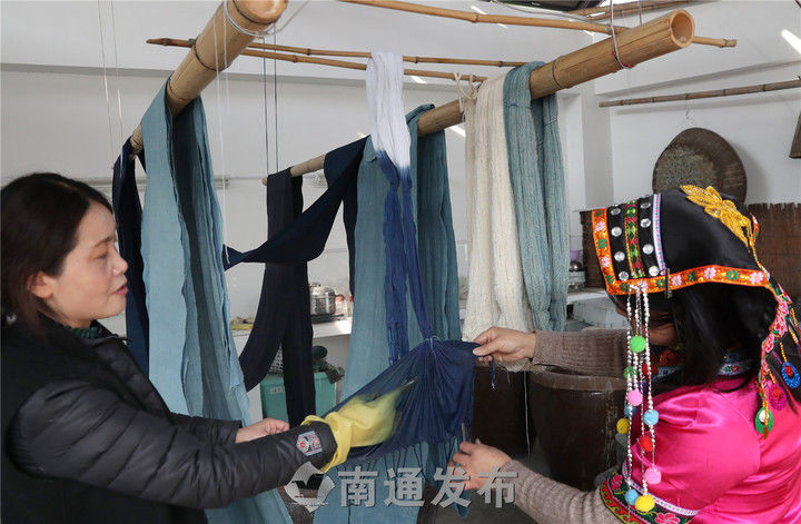 一块有着上百年历史的靛蓝色土布,看起来依旧挺阔如新、色泽亮丽。这就是明清年间便闻名大江南北的“小缸青”染色技艺的魅力。9日,记者走进位于陈桥街道的南通艾蓝染色技艺传承基地,探访“种蓝制靛”这一流传千年的民间工艺绝活。