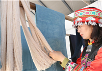 “太美了,远远看去简直就是一幅水墨山水画。”将雪白的棉质围巾用棉线细细扎起,浸入由蓼蓝制成的纯植物染料中,经过浸泡、清洗、还原,靓丽的“中国蓝”在白色围巾上做出了一幅美丽的画,浸泡次数越多、颜色越浓。前来体验蓝染技艺的市民丁珺珺和小姊妹们一面亲手染色,一面小声地赞叹着。