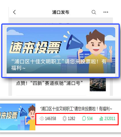 把握新媒体端互动性强的传播特点,引导广大受众参与到新闻事件中,营造浸入式收听收看体验。如:今年5月11日浦口发布微信公众号推文《“浦口区十佳文明职工”请您来投票啦!有福利》,阅读量三天之内突破14万,累计点击量超过50万。通过对区内主题活动线上线下组合宣传和全媒体报道, 鼓励受众用户积极参与,各类新媒体平台影响力指数位列全市第一方阵。