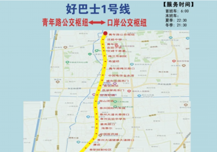 这些线路将调整“泰州好巴士1号线”开通后,市区这几条与好巴士1号线复线系数较高的线路将同步调整: