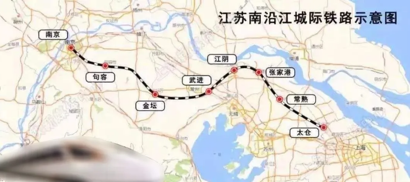 南沿江城际铁路是时速350公里的高速铁路,起于南京南站,东经句容市、金坛区、武进区、江阴市、张家港市、常熟市,终至在建的沪通铁路(上海—南通)太仓站。通车后,沿线地区将正式融入沪宁一小时高铁圈。