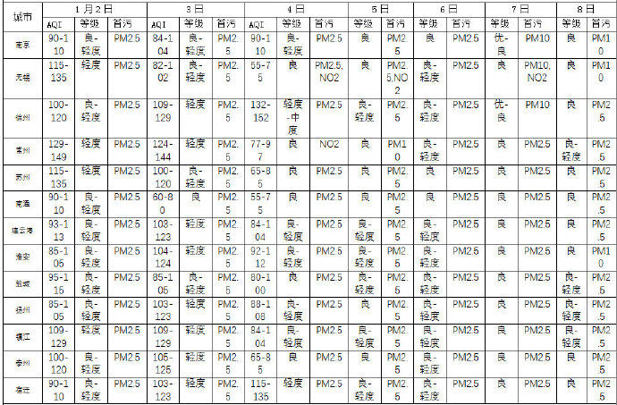 另外,据江苏省气象台空气质量预报,1月1-2日,全省地面受高压控制,天气静稳,空气污染气象条件转差(2-3级)。