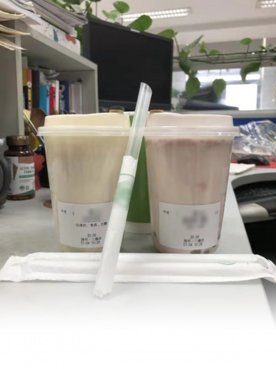 3日晚在西区一家东园小馆餐饮店,记者点了一杯豆浆,服务员从一堆一次性塑料吸管中抽出一根装在了袋中。4日在“叶子与茶”扬州三盛店,记者点了几杯奶茶,配的也是一次性塑料吸管。4日清晨在望月路一家餐饮小店,记者点了一份热饮,热饮配的吸管仍是一次性塑料吸管。4日中午,在西区一家喜茶店,点了两杯奶茶,这次提供的是可降解纸吸管。4日下午,记者点了一份家和豆浆外卖,发现外卖中提供的是竹纤维材质的环保纸吸管。