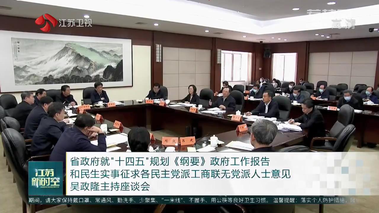 1月5日上午,省长吴政隆主持召开各民主党派省委、省工商联负责人和无党派人士代表座谈会,听取对“十四五”规划《纲要》、《政府工作报告(征求意见稿)》、2021年度省政府民生实事和政府工作的意见建议。