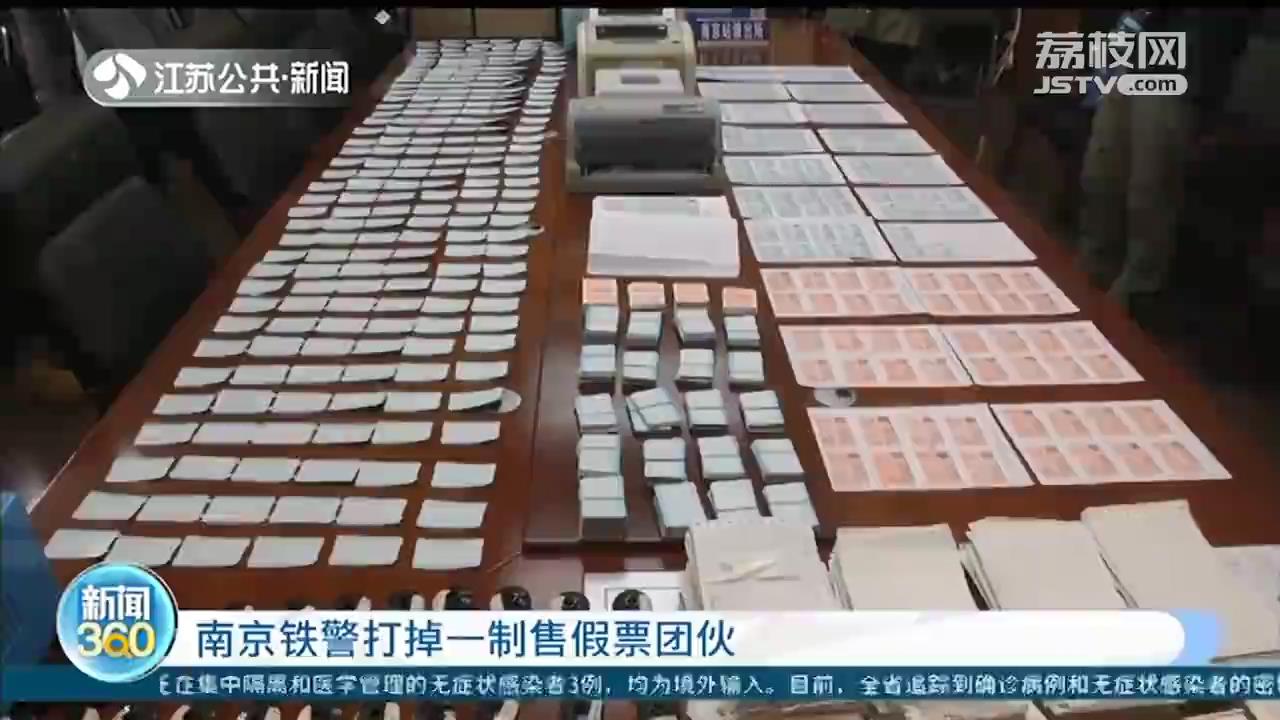 南京铁路公安处特警支队副支队长陈楚介绍案情,当时现场有3名工作人员正在进行制票,现场查出成品火车票299张、半成品157张,假发票当时初步估计上万张,办案民警用箱子装了8箱的假发票,总涉案金额初步统计近百万元。