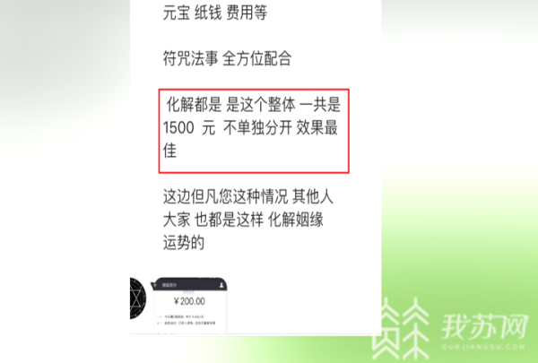 付费后约40分钟,对方博主说记者和前任“现在缘分很弱”。不过,和上一位咨询师意见不同的是,这名博主分析结果是:主动找他没有用,反而加速缘尽,解决方法是增加缘分,需要“1500元香火贡品”。见记者兴趣不大,对方不断发来成功案例,宣称都是百分百有效果。律师表示,此举已经涉嫌诈骗。