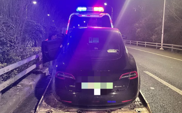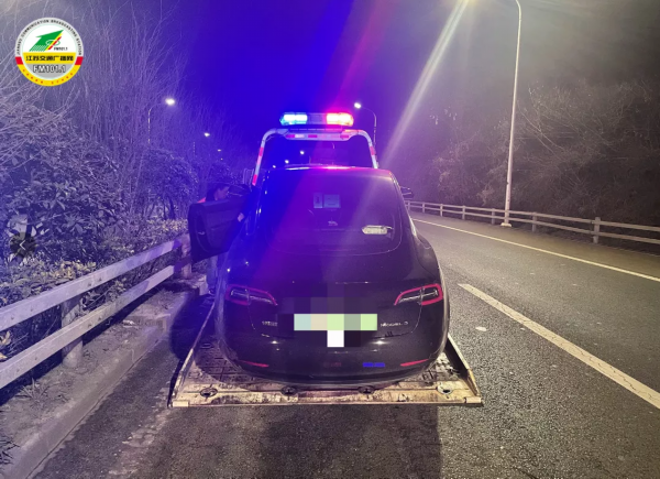 但这位驾驶员在电力耗尽前,把车开伤了应急车道,