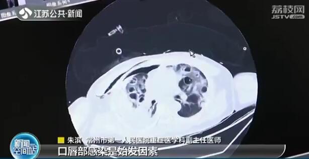 当天陈先生挤完痘后病情就开始恶化,不仅口唇部肿胀,还出现了呼吸困难、血氧饱和度降低等症状。经过检查,医生发现陈先生肺部受到严重感染,其原因和陈先生挤痘痘有着直接联系:“口唇部感染是始发因素,随后导致双肺的感染,反复气胸,病情非常重。”