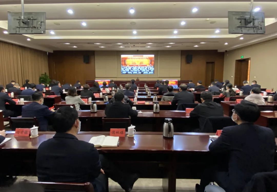 陆秋明、王跃中、陈锁龙、刘国新、俞金红等区领导在金坛分会场参加视频会议。