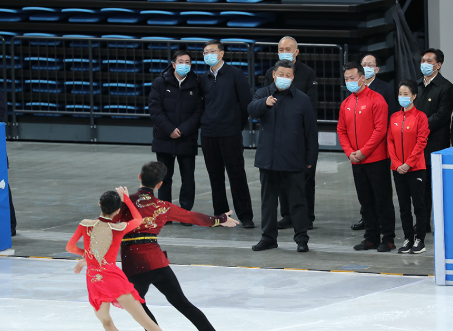 1月18日,总书记考察首都体育馆并了解花样滑冰运动员参赛备战情况。