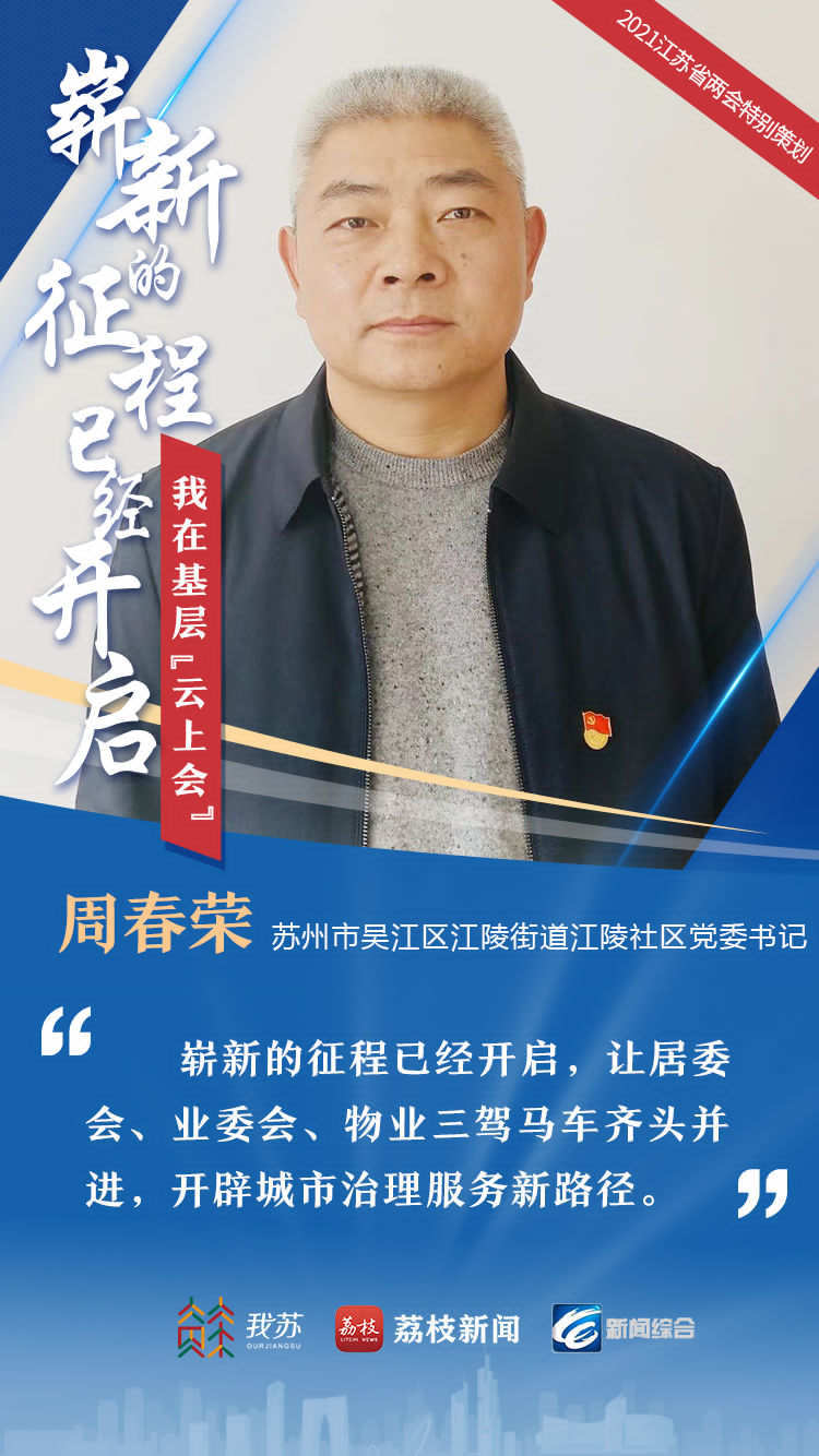 “娄勤俭书记的讲话振奋人心,政府工作报告紧扣发展、紧贴民生。其中最让我印象深刻的是,娄书记提到要‘不断提升公共服务水平,把一个个民生难点变成民生亮点’,这也是我最关心的。未来五年我们江陵社区要进一步创新服务方式,提升服务水平,在各小区推行楼道长、共建单位、综治网格员、巡片网格员、志愿者等多方共建的‘1+3+N’模式,充分发挥社区、业委会、物业三方作用,开辟城市治理服务新路径。同时,针对老旧小区,我们将全面推动封闭式管理,实行无物业小区物业化管理。针对老年人居住较多的小区,将在周边增加适老设施、照明设施和无障碍设施,让百姓真正得实惠。”——周春荣