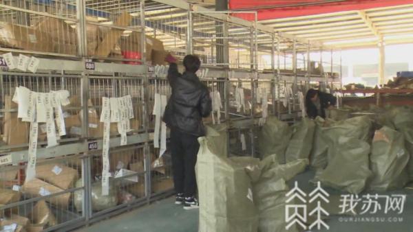 昨天下午,记者在沭阳城区的一家快递物流园内看到,园内11家快递公司都在忙碌的进行快递分拣、装货。据一家快递经理介绍,目前快递的揽收件数量比平时增加了20%,派送数量增加30%左右,今年的年货除了各类电商货物,还有各类食物等。