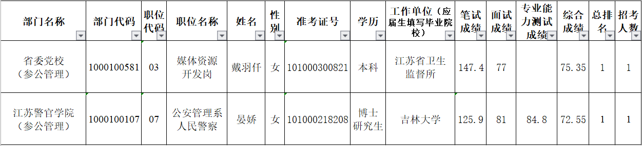 我苏网讯 据中共江苏省委组织部网站,2021年2月2日,江苏省公务员局对2020年考试录用公务员拟录用人员名单(2名)进行公示。